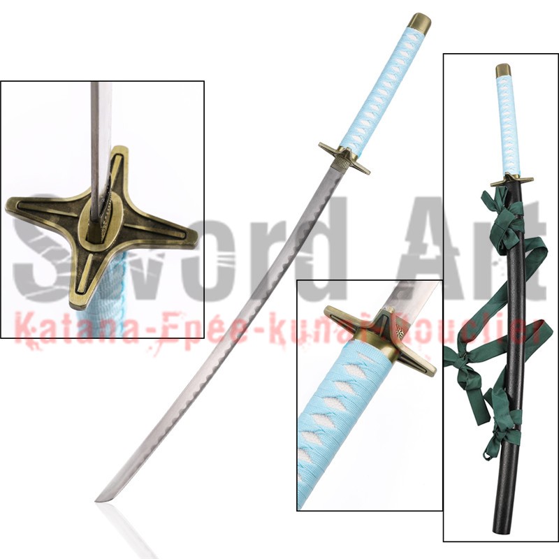 Hyōrinmaru Dans sa forme scellée, Hyōrinmaru ressemble à un katana normal, à l'exception de la garde qui est sous la forme d'une étoile de couleur bronze avec quatre pointes. Sa poignée est bleue pâle et sa gaine bleue foncée. La gaine se dissout complètement lorsqu'il sort son épée. Il le porte sur son dos par un ruban vert sur son épaule droite à la manière de Unohana, qui le porte avec un ruban sur son épaule gauche. Hitsugaya est l'une des quatre personnes qui transportent un Zanpakutō dans le dos.